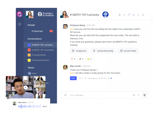Aprovecha de la comunicación en canales, grupos, debates, ubicación y mensajería cifrada de extremo a extremo e incrementa tu productividad. Accede también al historial de tus conversaciones para que no pierdas ningún detalle.